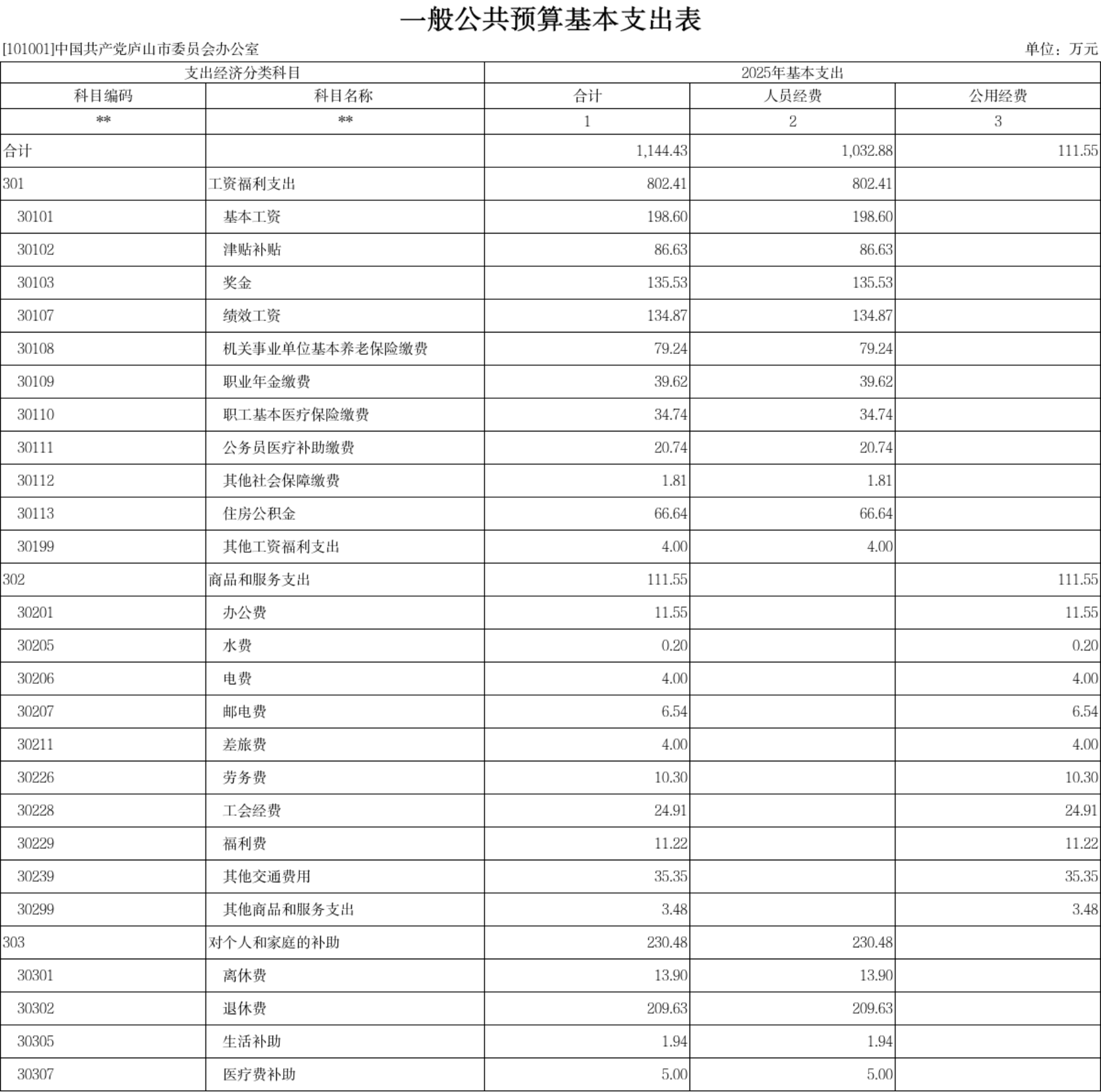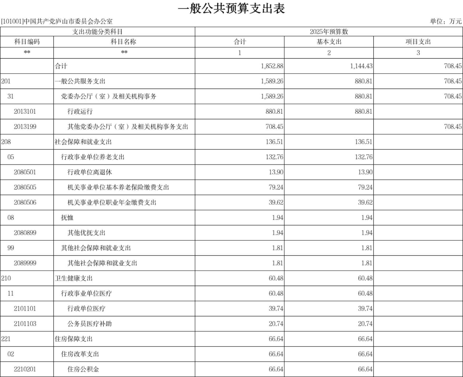 附件:中共庐山市委办公室2025年单位预算表
