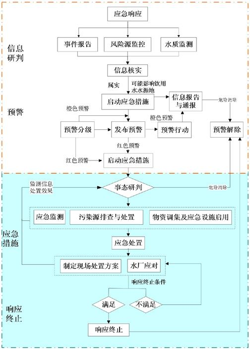 为提高效率、简化程序,根据庐山市集中式地表水饮用水水源地的重要性、污染物的危害性,本方案将饮用水水源地应急事件预警划分为两级,即I级预警(红色)、II级预警(橙色)。