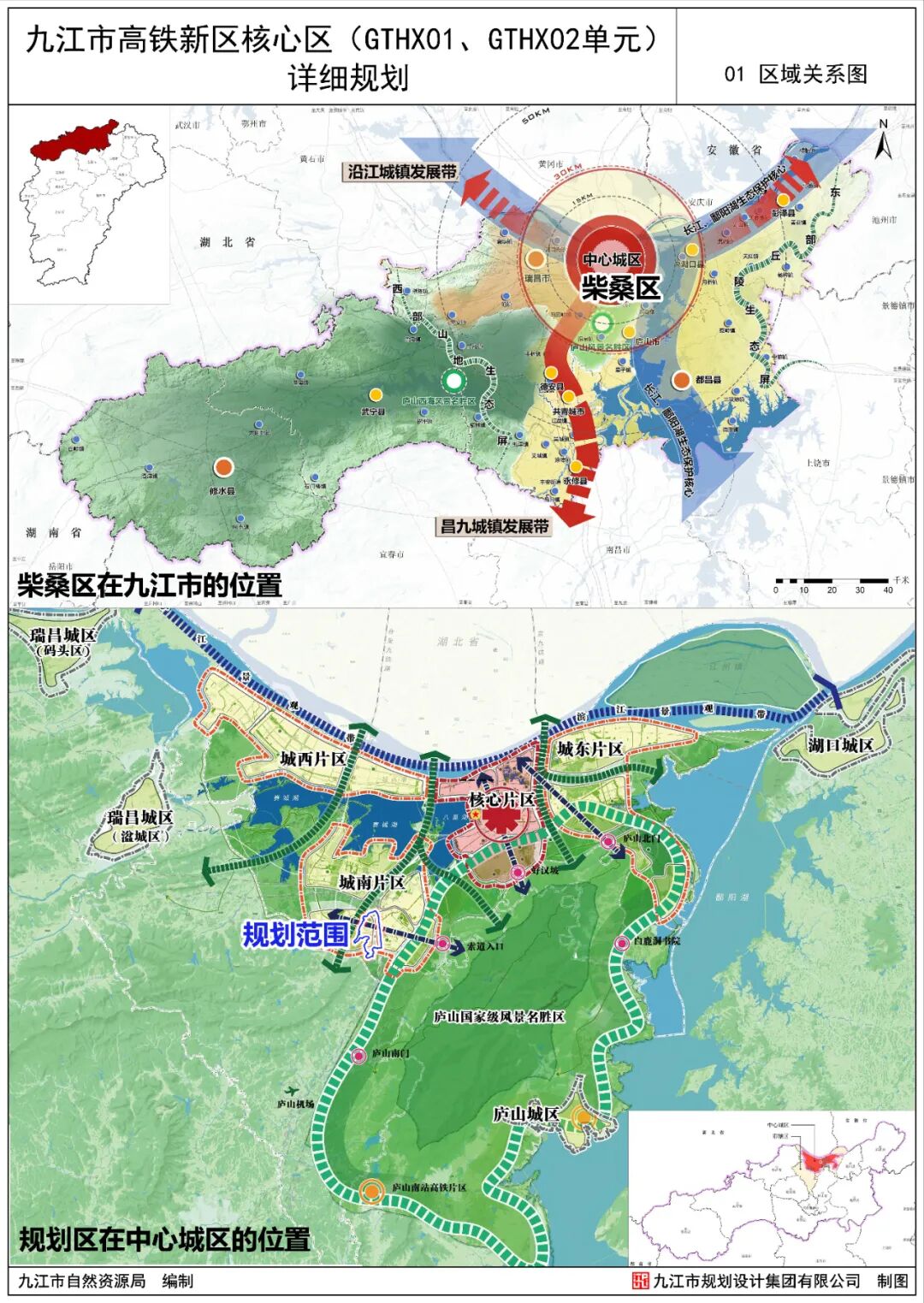 规划范围东至九江快速路,南至高铁大道,西至梅岭路,北至公园北路,规划总用地面积为541.15公顷,其中城镇开发边界内用地面积为522.47公顷。三、目标定位