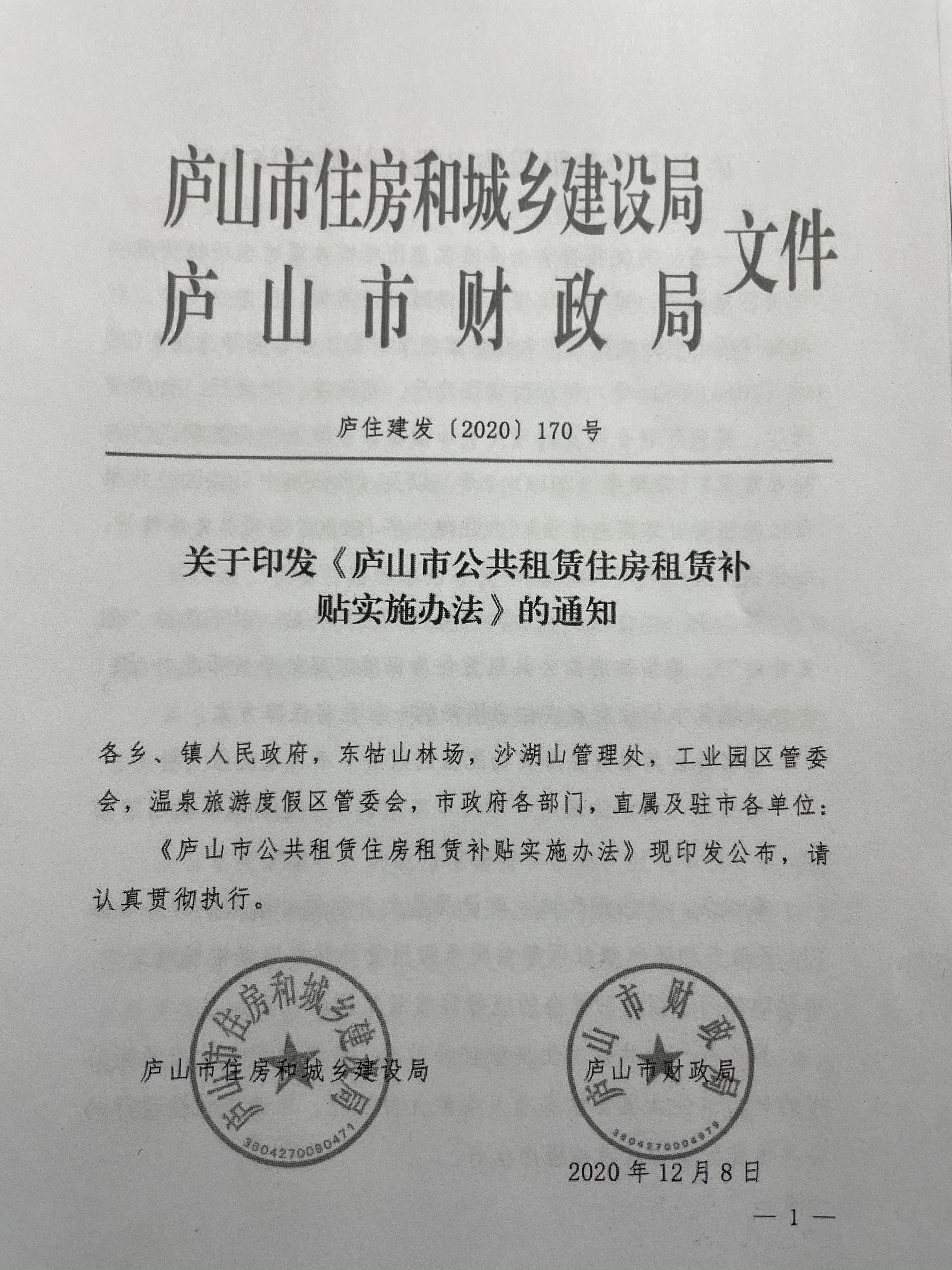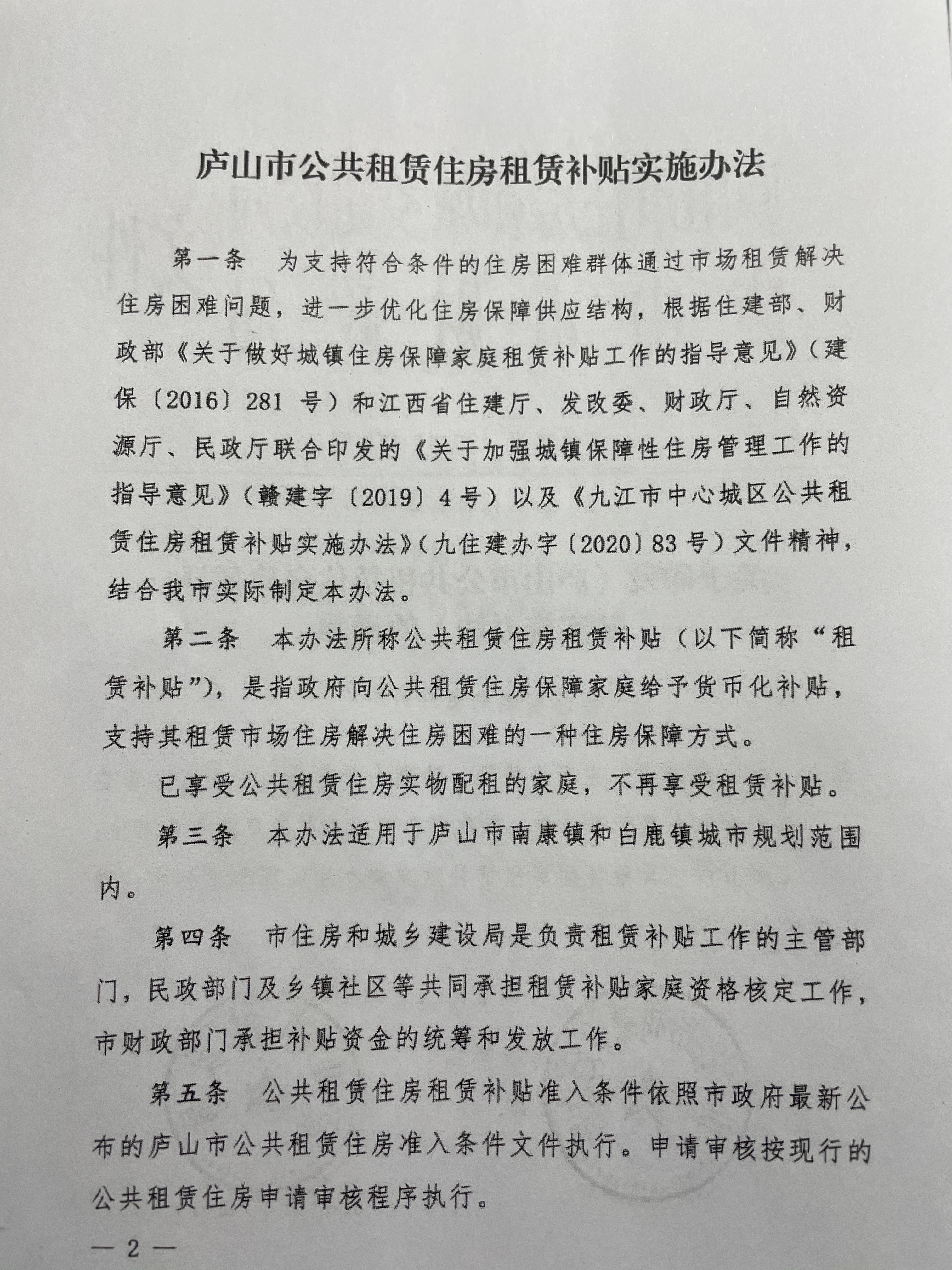 庐山市公共租赁住房租赁补贴实施办法