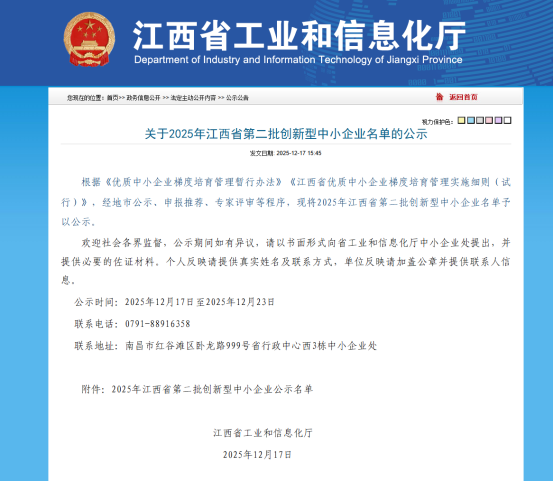 近日,省工信厅公示了2025年江西省第二批创新型中小企业名单,我市共有9家企业入选。待公示结束后,我市本年度获评的创新型中小企业将达到16家,创历史最好成绩。截至目前,我市累计培育创新型中小企业36家(含本次入选的9家),专精特新中小企业14家。